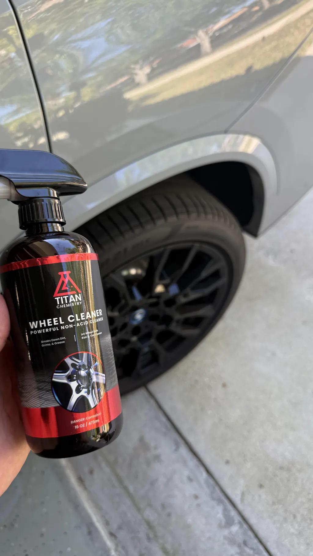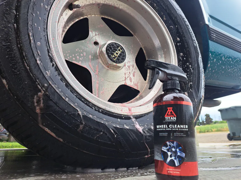 Titan Chemistry’s Non-acid Wheel Cleaner is the perfect solution for safely cleaning and maintaining all types of wheels, including delicate finishes and coated surfaces. Formulated without harsh acids, it effectively breaks down brake dust, road grime, and tough contaminants without the risk of etching or damaging your wheels. Ideal for use on chrome, alloy, anodized, or painted rims, this cleaner is both gentle and powerful, delivering a high-gloss finish. With its easy-to-use formula, you can achieve professional results in minutes, ensuring your wheels always look their best.